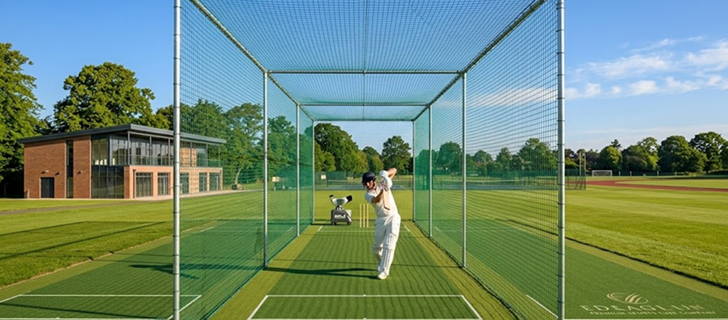 Durable Cricket Net installation for schools, playgrounds and residential sports areas.