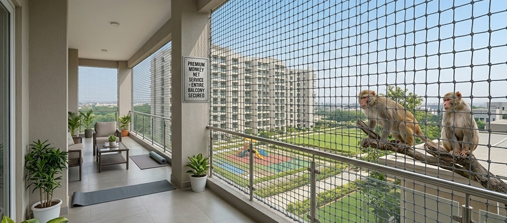 Professional Bird Net Installation in Ahmedabad and Lucknow for balconies and commercial buildings.